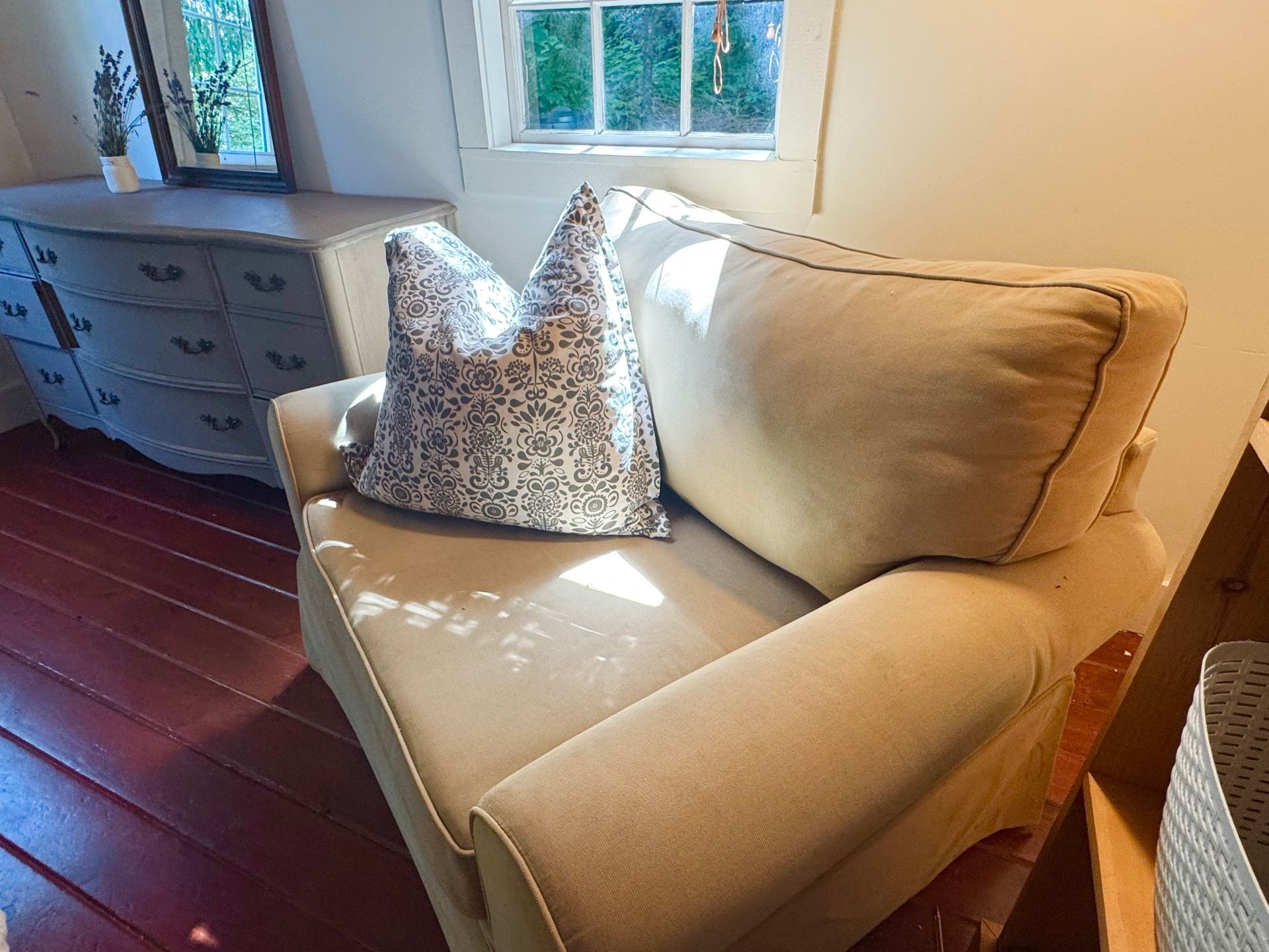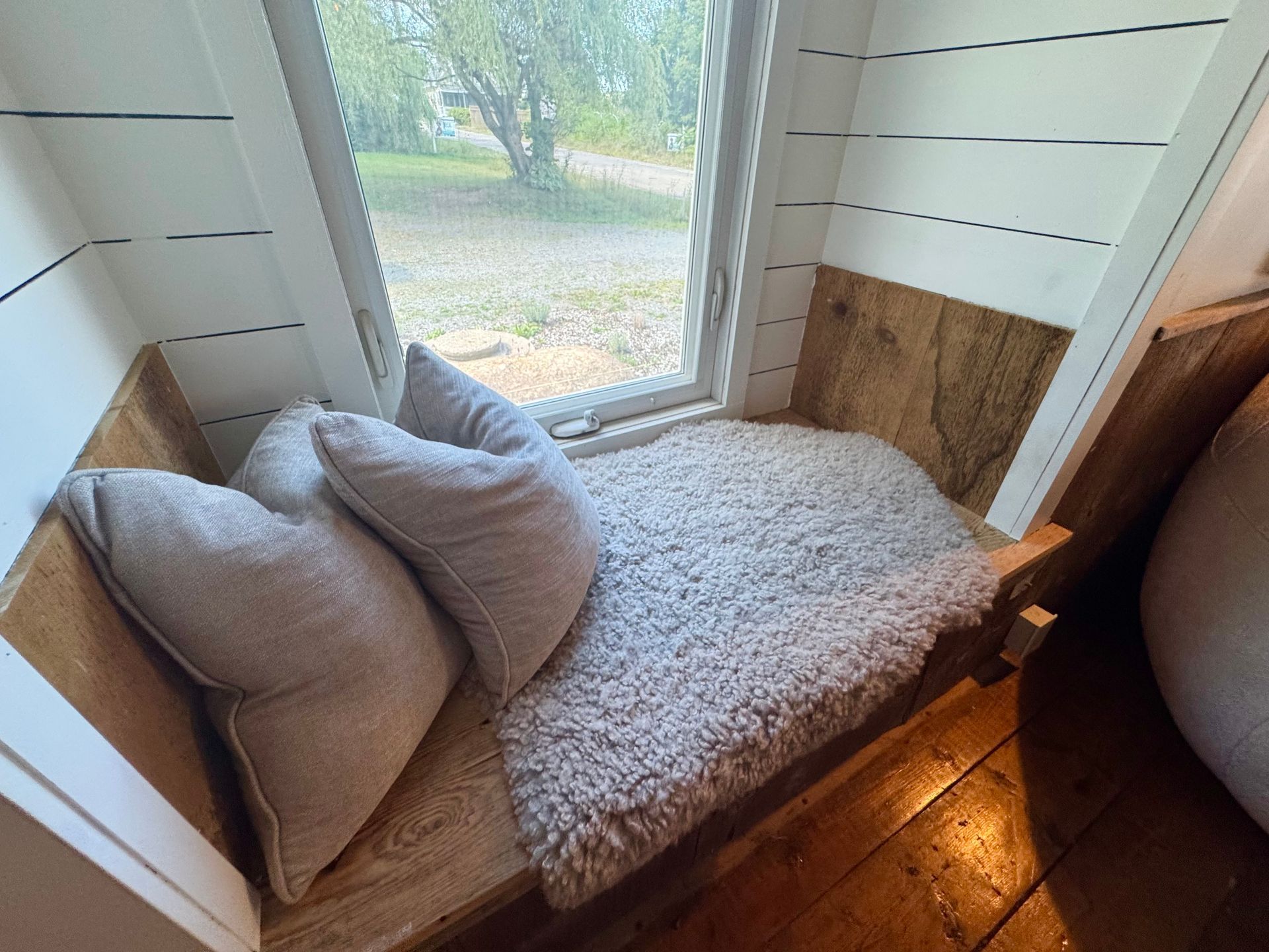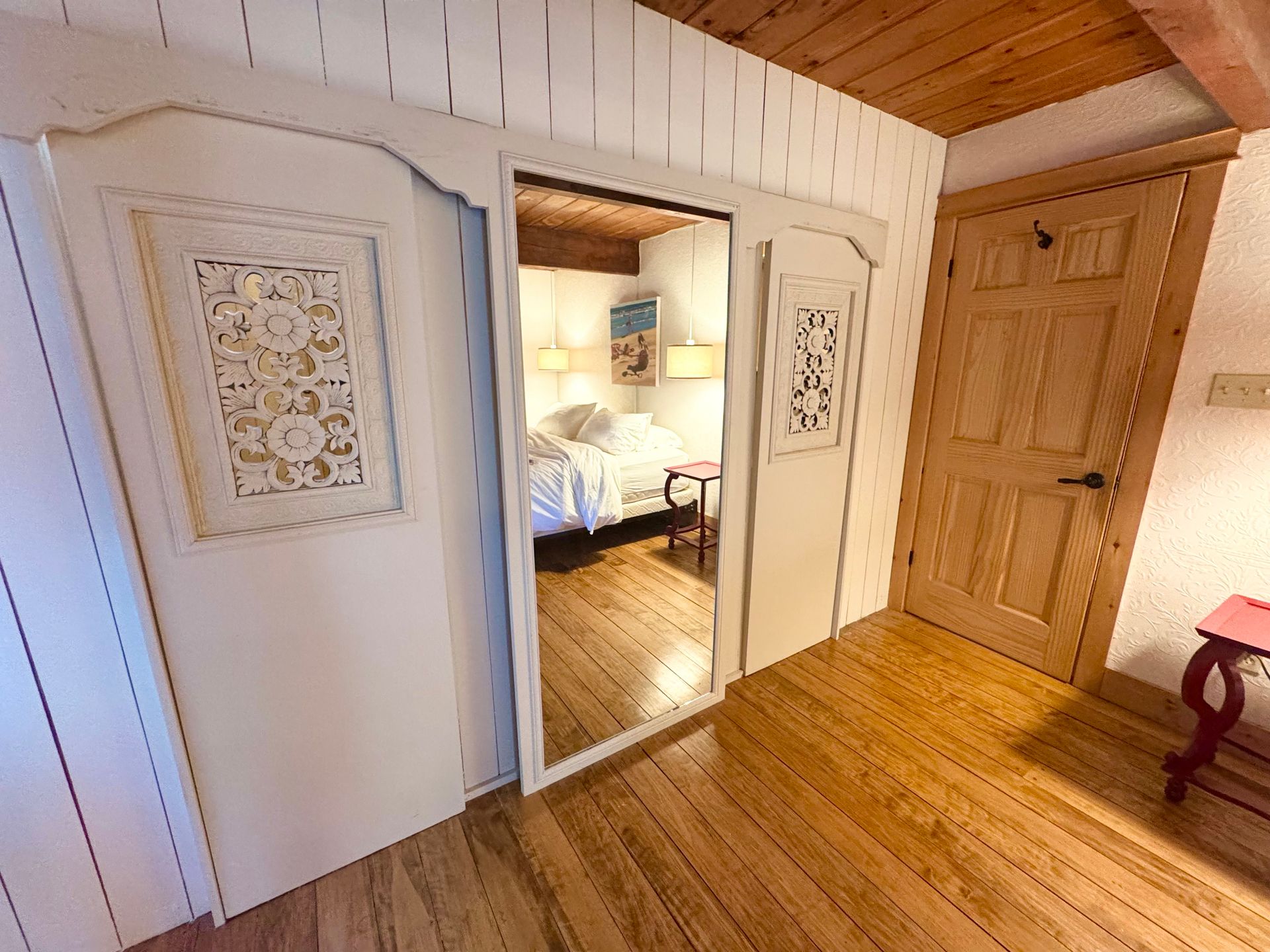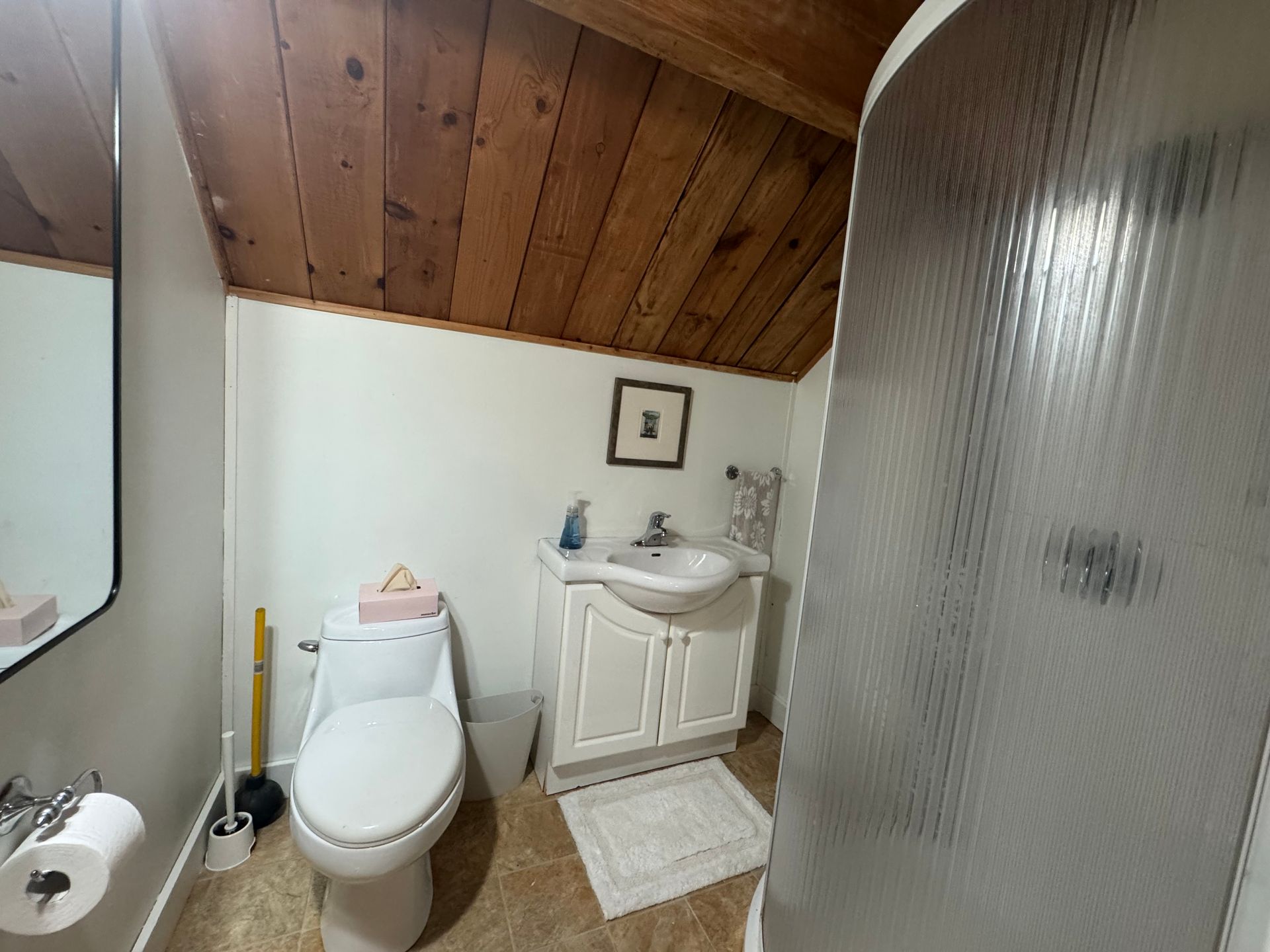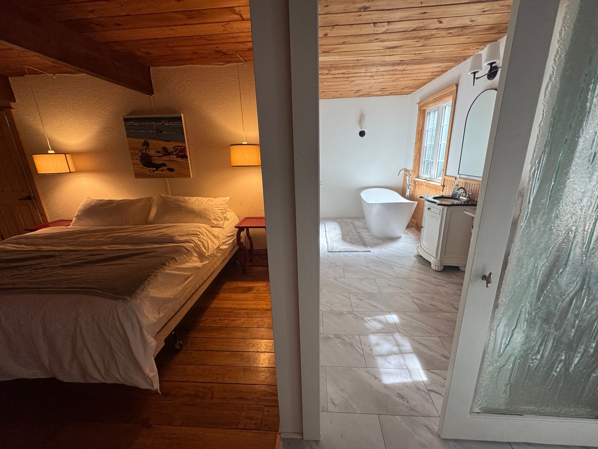 Inside, you’ll find stunning post-and-beam vaulted ceilings and an open-concept layout that creates a welcoming atmosphere reminiscent of an “old English cottage.”
