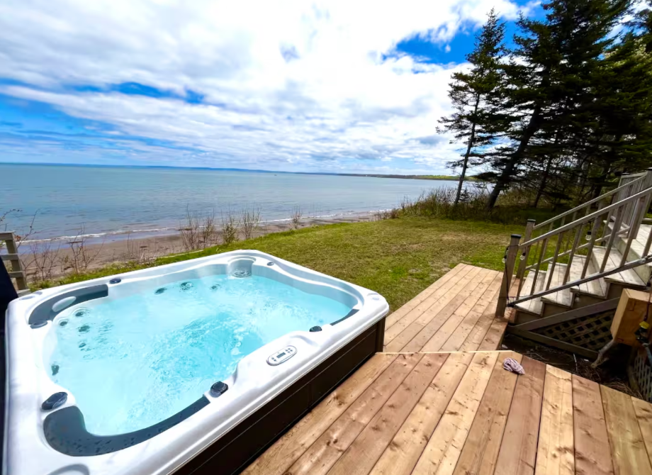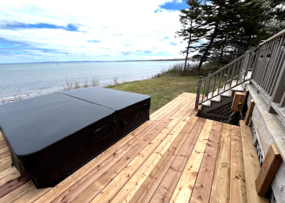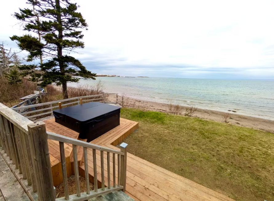Please note: The stairs to the beach, along with the connecting walkway, are shared between two properties. You may occasionally see our friendly neighbours walk past the hot tub to use the stairs. Thanks for your understanding!