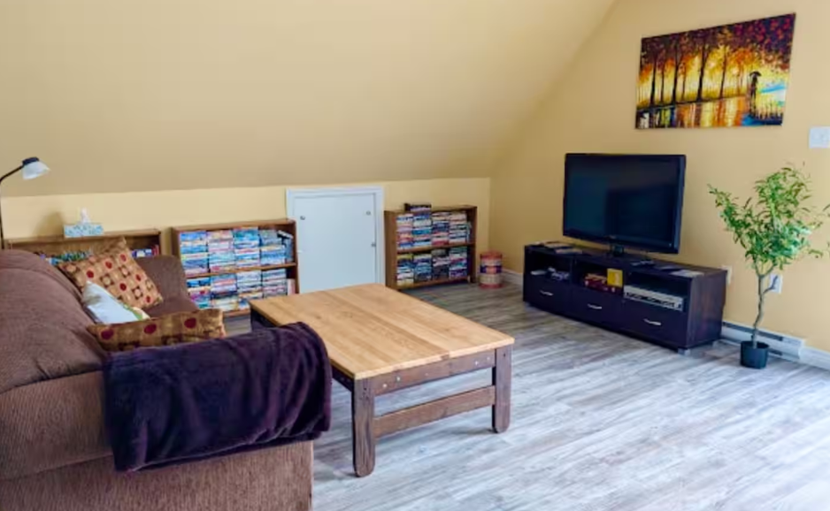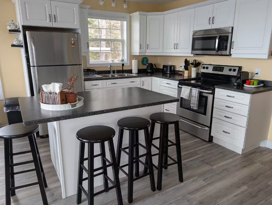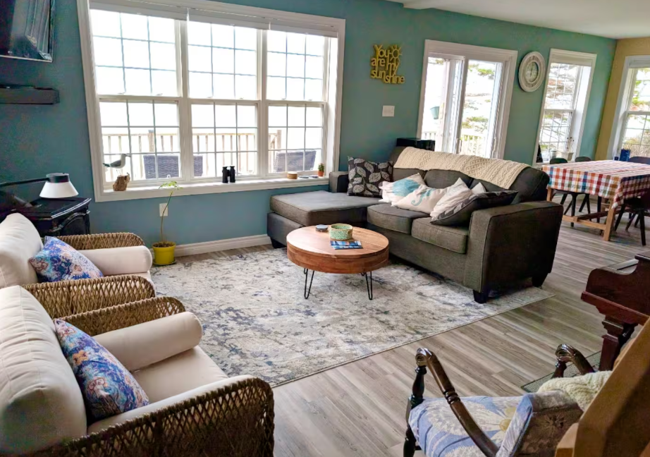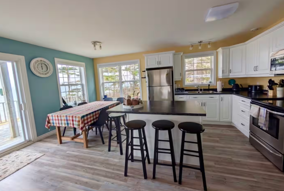 Our oceanfront cottage features a brand new hot tub !! on the main level we have a queen bed , along with a kitchen and living room. Upstairs you will find a double bed, a single bed, and a double pullout couch for our guests.
