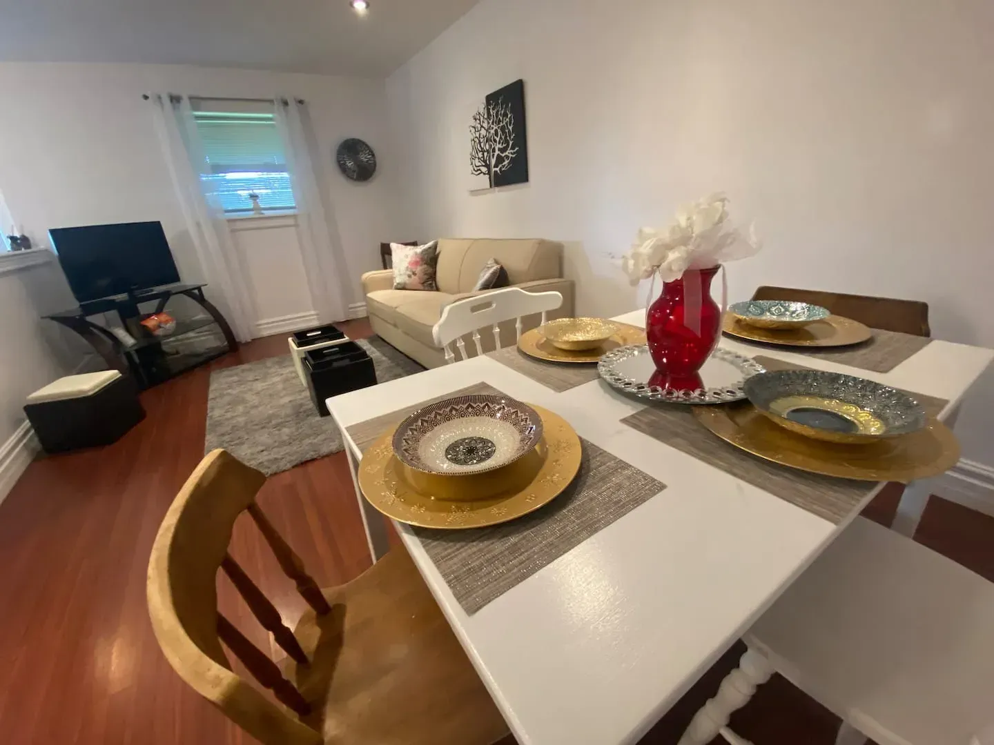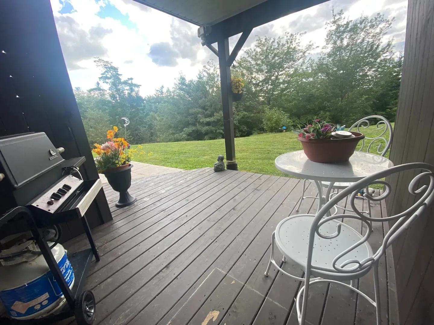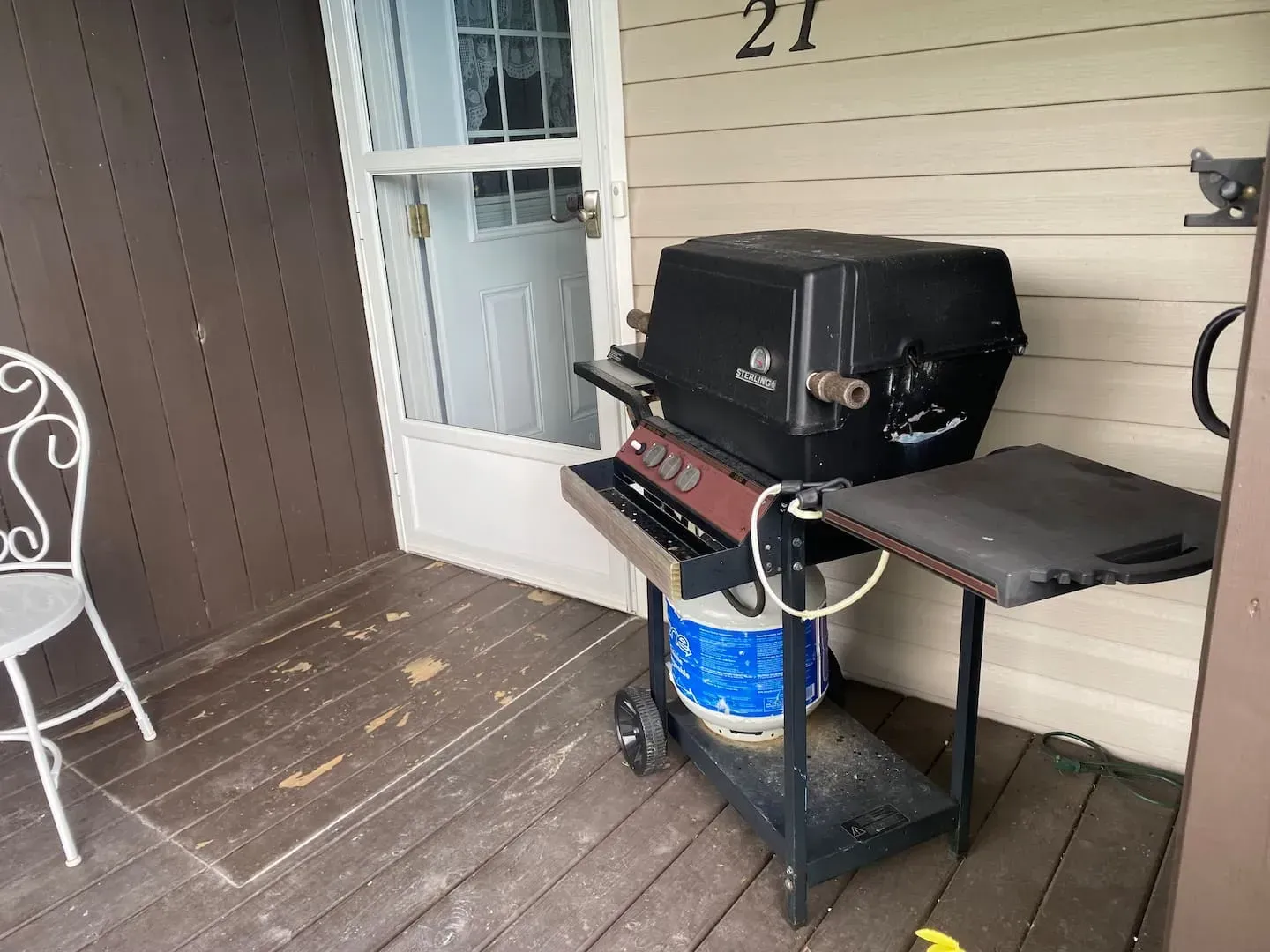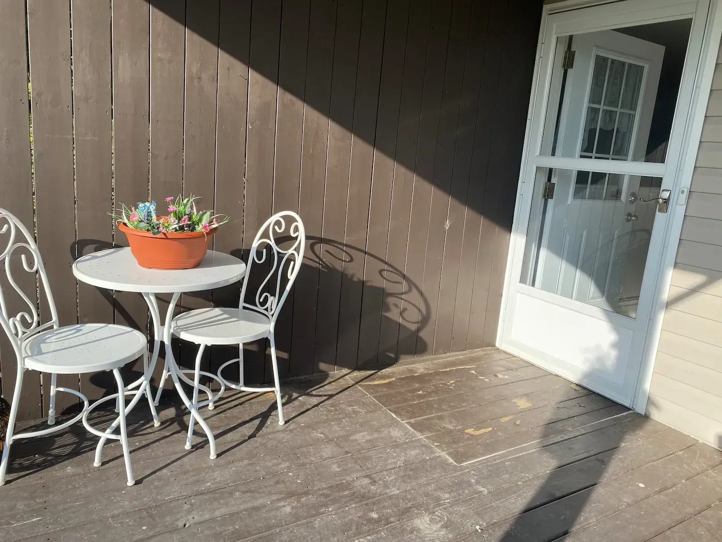 A beautifully furnished basement apartment awaits your stay! A BBQ and cozy back deck, with a fire pit and chairs.