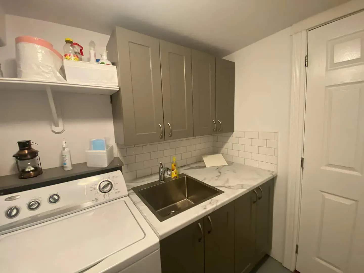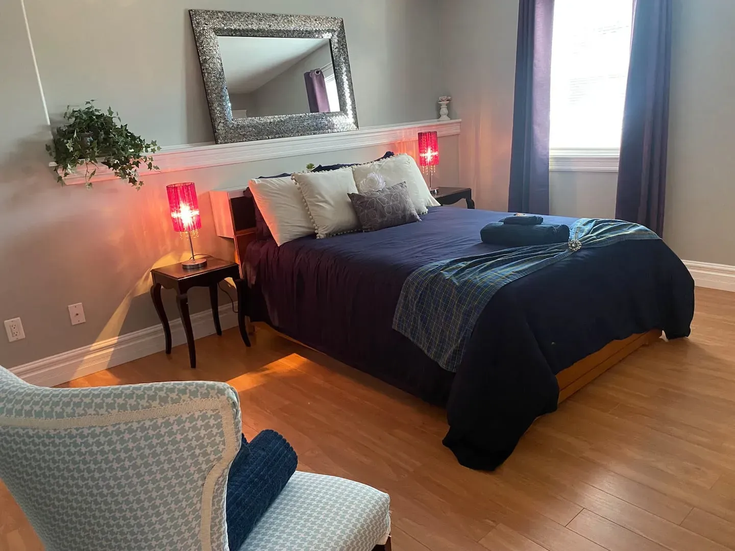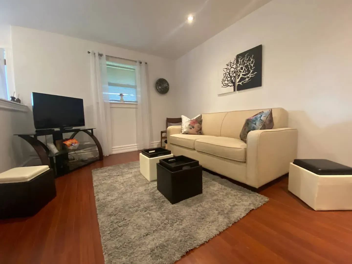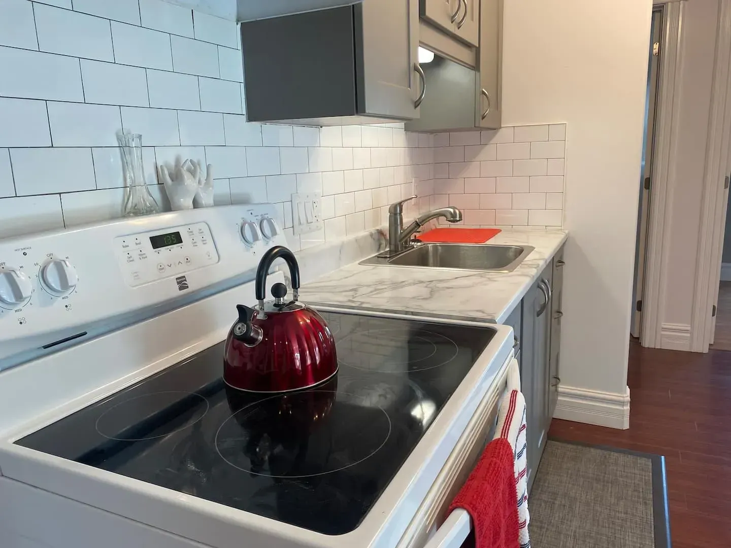 A beautifully furnished basement apartment awaits your stay! A BBQ and cozy back deck, with a fire pit and chairs.