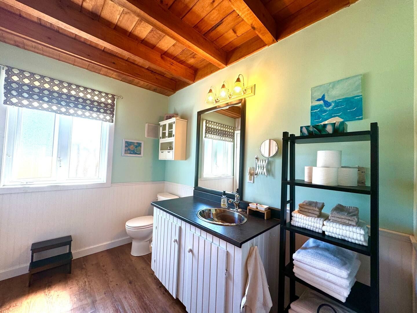 As a guest, you'll have exclusive access to the entire property, including all amenities. This may also include the private beach, outdoor fire pit, and a spacious deck with stunning ocean views. Inside, you'll have full use of all bedrooms, the bathroom, the living area, and the fully equipped kitchen, ensuring a comfortable and relaxing stay.