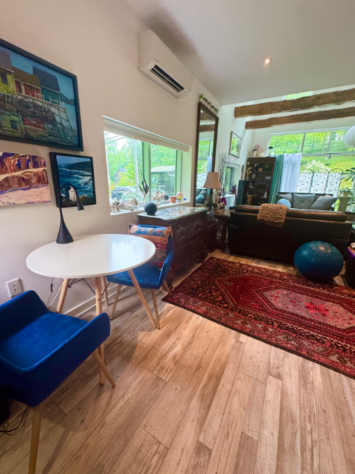 Gaspereau Studio Home was renovated from a commercial property in 2013 into an open concept studio house with a modern urban vibe, by one of Nova Scotia's best known architects. It features loads of windows and tons of light, 2 bedrooms, 1.5 bathrooms, a laundry room, and infrared sauna. It boasts an efficient layout, stainless steel and light wood finishes throughout. The kitchen is a very well-stocked, great for entertaining, or just preparing simple meals. There is free, off-road parking for two cars and seating at the side of the house.
